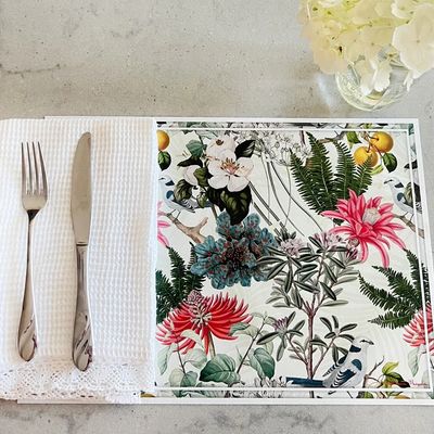 This collection of colorful placemats are designed and made in the coastal town of George in the western cape, South Africa. The collection speaks to all who appreciate the versatility of beautifully crafted and user friendly table linens. It affords one the opportunity to create exquisite table settings in both formal and informal environments. The collection is the perfect gift for anyone who takes pride in a table where families and friends gather and make memories.