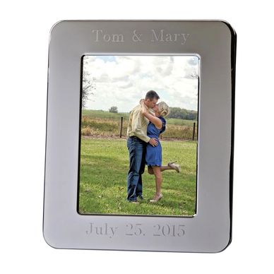 Simple and classic, just like it's namesake Boston. Our "Boston" frame is surrounded by a 1.25" wide plain border that is perfect for any optional engraving that you may want to add. The frame can be displayed either vertically or horizontally and is done in a non tarnish finish nickel plated finish with a black flocked back and easel. Gift Boxed.