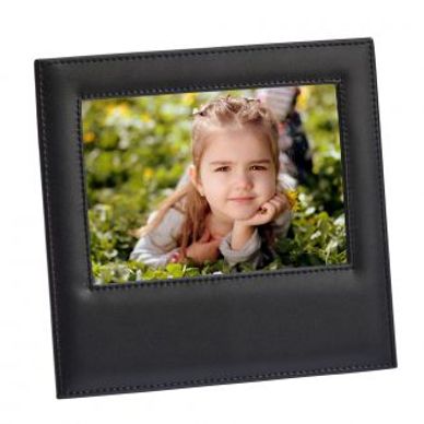 Made from genuine top grain leather this black leather frame can be used horizontally or vertically because it features a 2-way easel back. The back of the frame is grey velveteen material. Each frame includes custom face paper marked "Genuine Top Grain Leather".