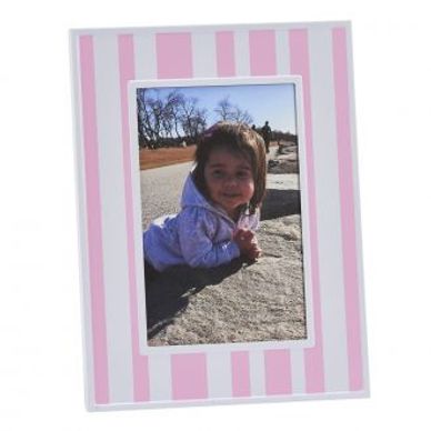 Display your most cherished moments in this adorable 4" x 6" pink & white striped frame. Can be used horizontally or vertically. Overall measurements: 6" x 8". Gift Boxed.