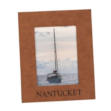Our caramel leatherette frame holds a