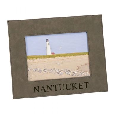 Our grey leatherette frame holds a