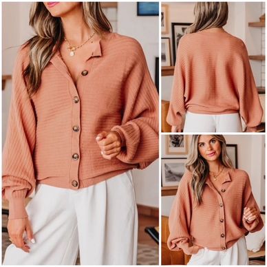 This ribbed sweater cardigan brings style and comfort together. Its broad rib knit gives a snug feel and a trendy vibe. The button-front lets you rock it open or closed, while the dolman sleeves add a laid-back, roomy fit perfect for easygoing days.