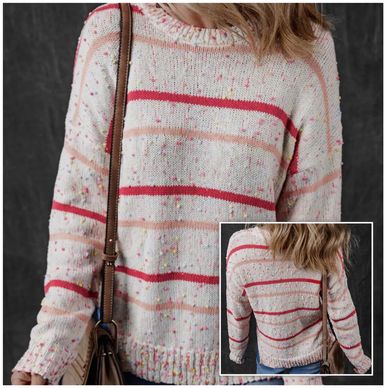 The knitted top's striped pattern lends it a timeless look, while the confetti detail adds a dash of fashion-forward flair. Its loose, drop shoulder design makes it an essential addition to any winter wardrobe, and a perfect match for any bottoms. (But seriously, don't miss out on this one!)