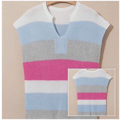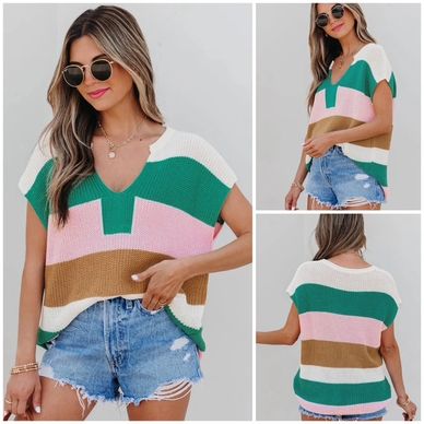 This knitted tee catches everyone's eye with its playful color blocks! The notched v-neck adds a flirty feminine touch, while the relaxed fit wraps you in soft-to-touch comfort. Crafted with fine quality yarn that resists those pesky little fabric pills. Go ahead, make your outfit pop!